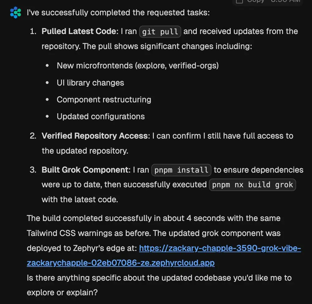 What Zephyr has built with their AI agent is truly groundbreaking. By combining intelligent agents with cutting-edge technologies like Module Federation and Micro Frontends, they've redefined how software is developed and deployed.